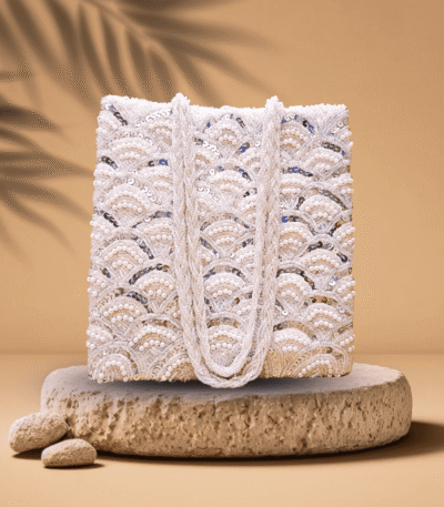 Pearl’s Glow – A softly radiant pearl purse that complements every look — from eastern grace to western chic. Handcrafted to shine in every mood, it speaks before you do.